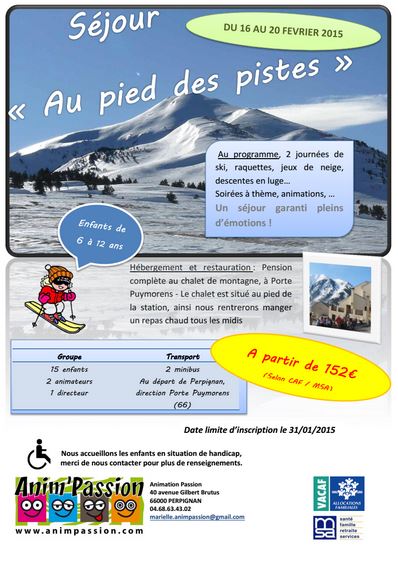 L'association AnimPassion organise pour les 6-12 ans un séjour à la montagne avec au programme :